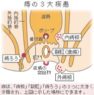 「痔」は水虫、肩こりに次いで身近な病気で、悩んでいる人は数多くいます。痔の諸悪の根源は、便秘と下痢。痔は、早期に治療すれば、手術しないで治ります。