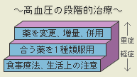 最小血圧が軽い場合は、食事療法や運動療法を併用した一般療法が行われ、中等以上になると薬物療法が行われます。